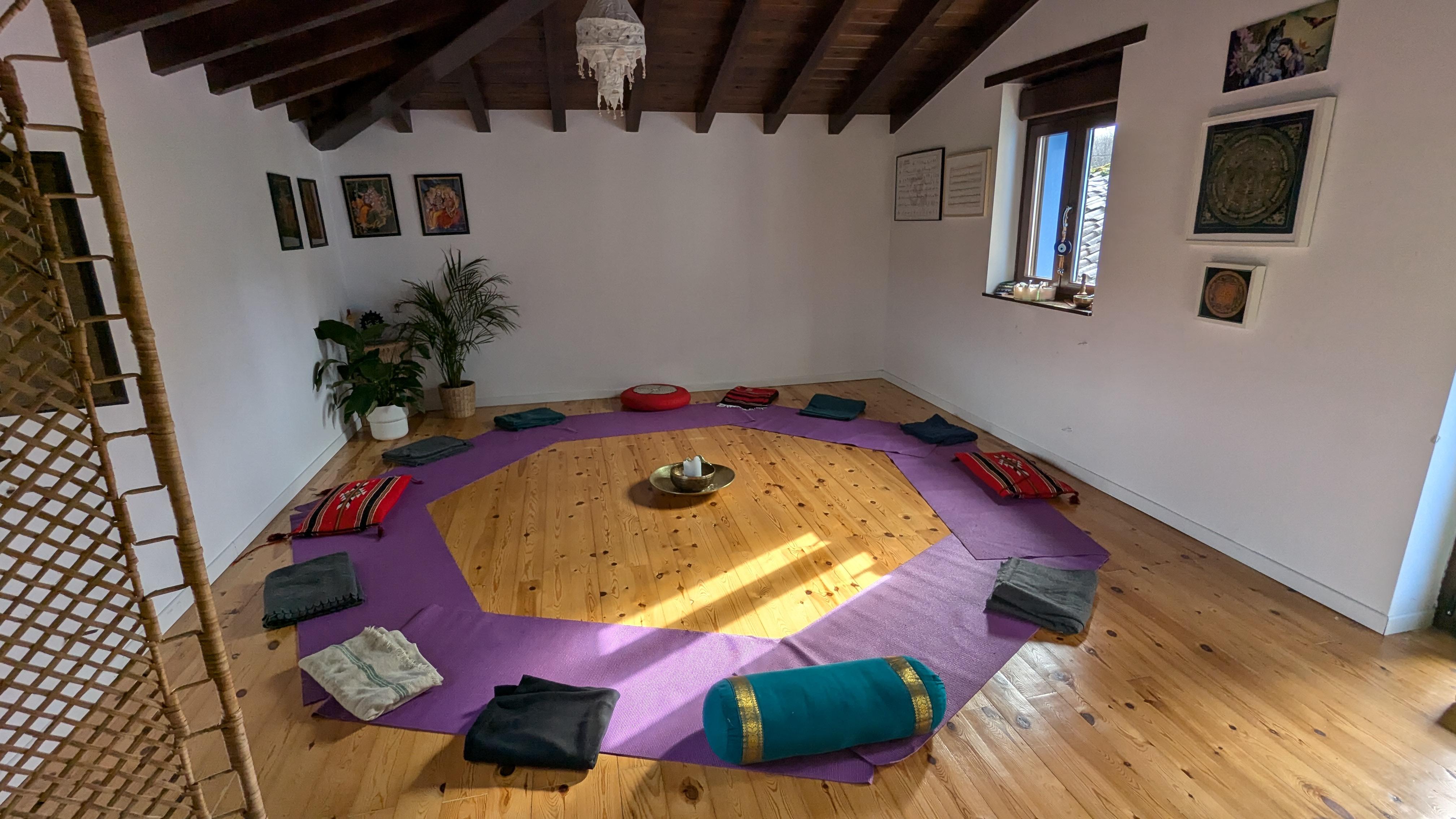 Come as cosy as you like. Mats, blankets, cushions, and bolsters are provided.